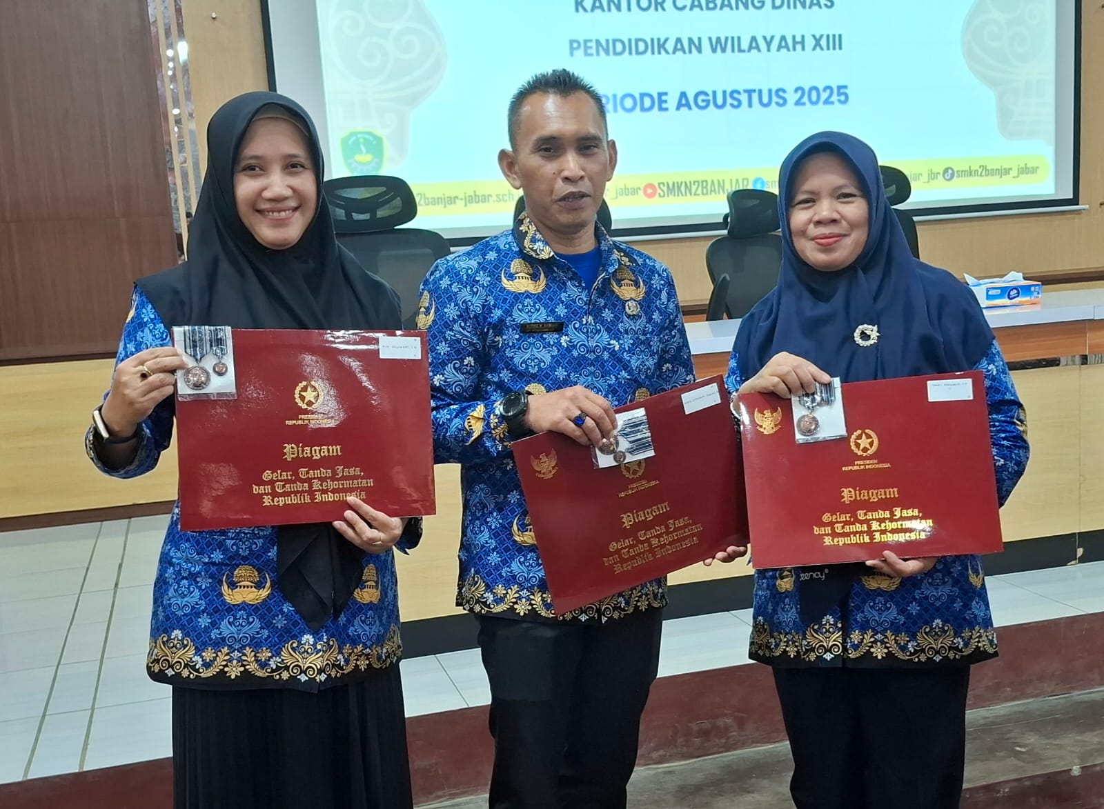 Banjar, 19 November 2025 — Tiga guru dari SMK Negeri 1 Panjalu, Kabupaten Ciamis, menerima tanda kehormatan Satyalancana Karya Satya di Gedung SMK Negeri 2 Banjar, Kota Banjar, Rabu pagi.